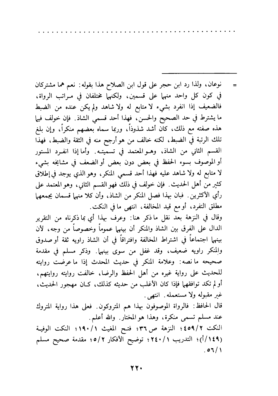 النكت 2/ 459؛ النزهة ص 36؛ فتح المغيث 1/ 190؛ النكت الوفية (149/ أ)؛ التدريب 1/ 240؛ توضيح الأفكار 2/ 5؛ مقدمة صحيح مسلم 1/ 56.