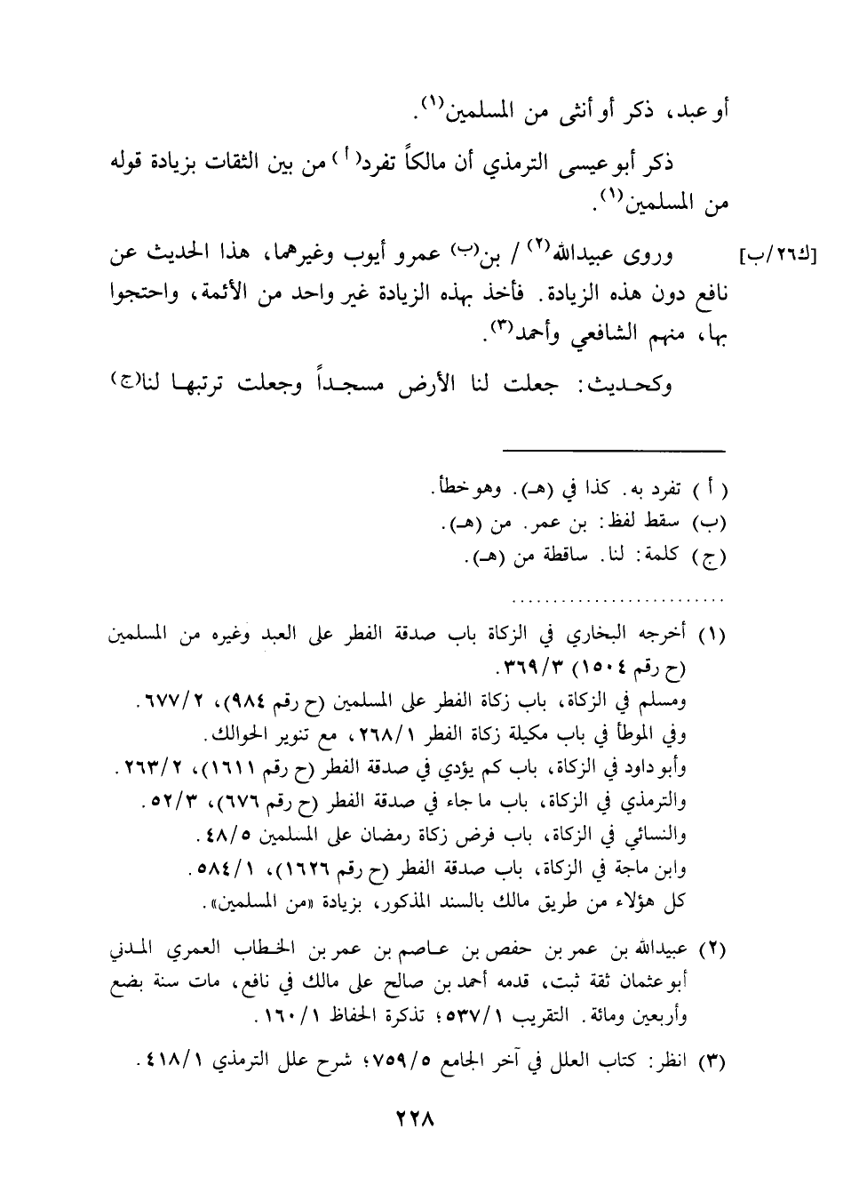 ذكر أبو عيسى الترمذي أن مالكًا تفرد (أ) من بين الثقات بزيادة قوله من المسلمين (1).