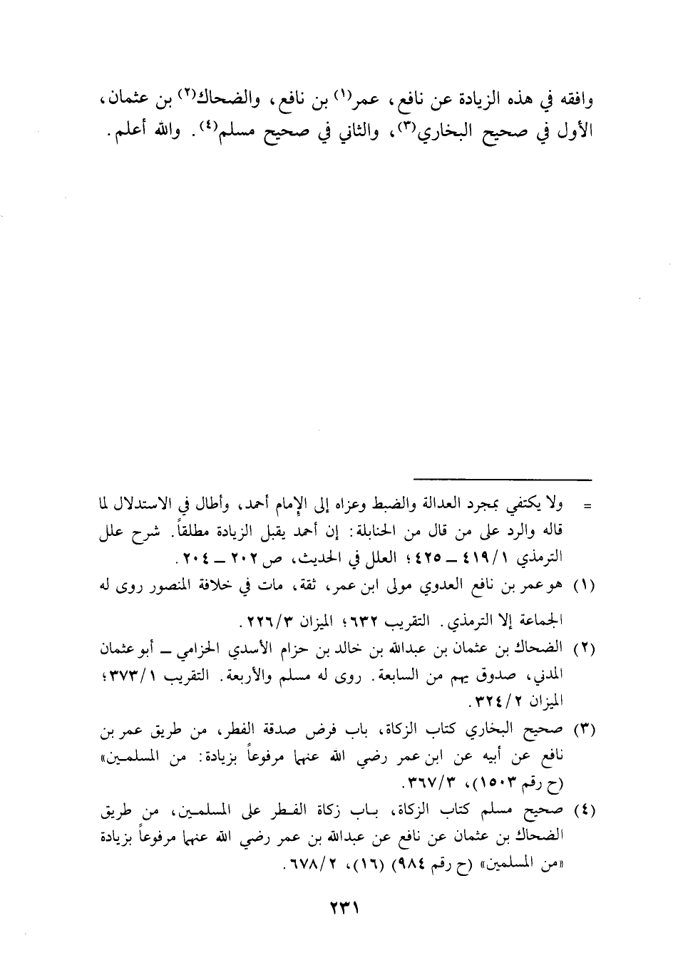 (¬4) صحيح مسلم كتاب الزكاة، باب زكاة الفطر على المسلمين، من طريق الضحاك بن عثمان عن نافع عن عبد الله بن عمر رضي الله عنهما مرفوعًا بزيادة "من المسلمين" (ح رقم 984) (16)، 2/ 678.