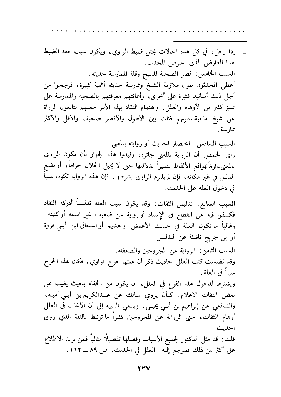 قلت: قد مثل الدكتور لجميع الأسباب وفصلها تفصيلًا مثاليًا فمن يريد الاطلاع على أكثر من ذلك فليرجع إليه. العلل في الحديث، ص 89 - 112.