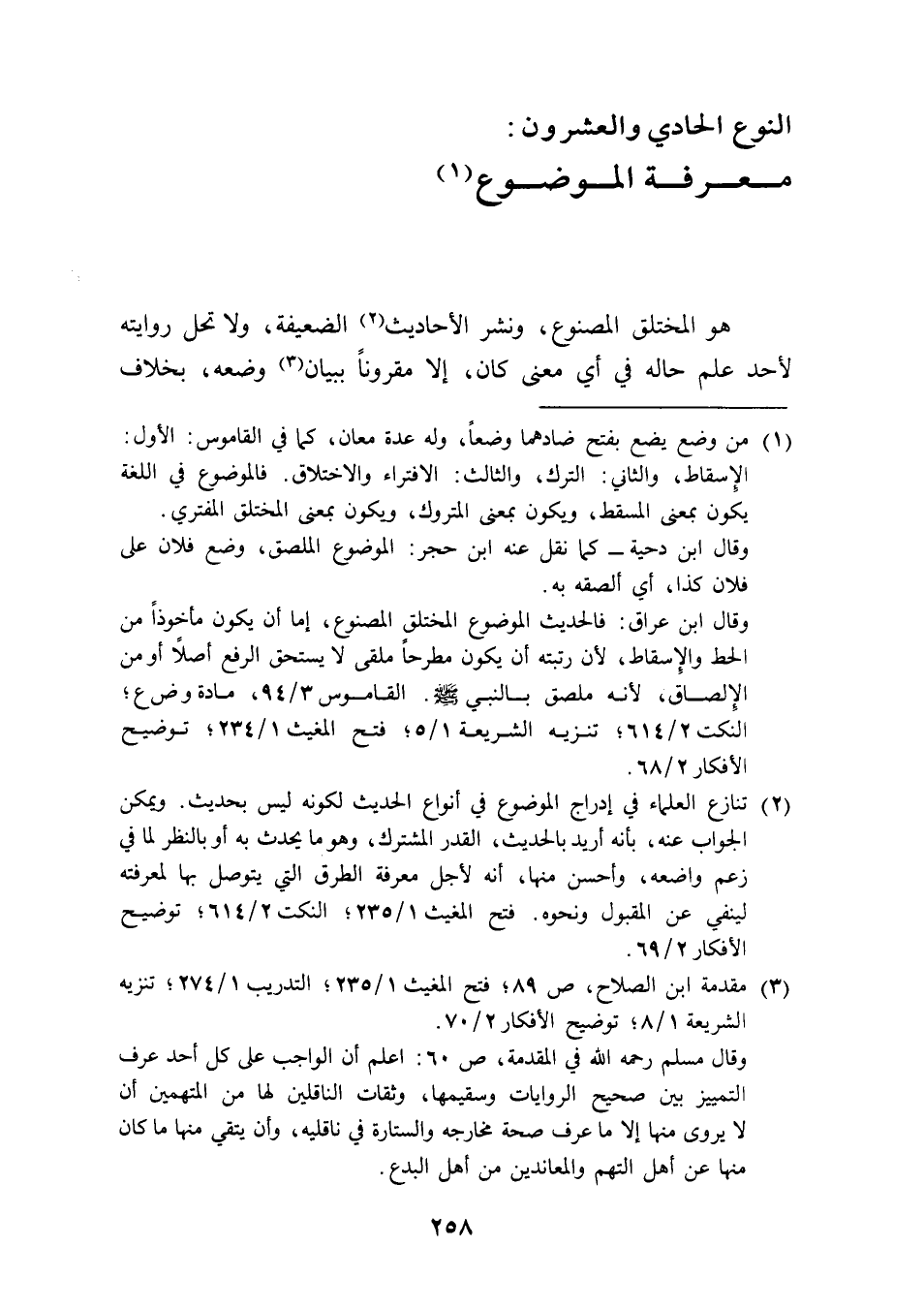 (¬3) مقدمة ابن الصلاح، ص 89؛ فتح المغيث 1/ 235؛ التدريب 1/ 274؛ تنزيه الشريعة 1/ 8؛ توضيح الأفكار 2/ 70.