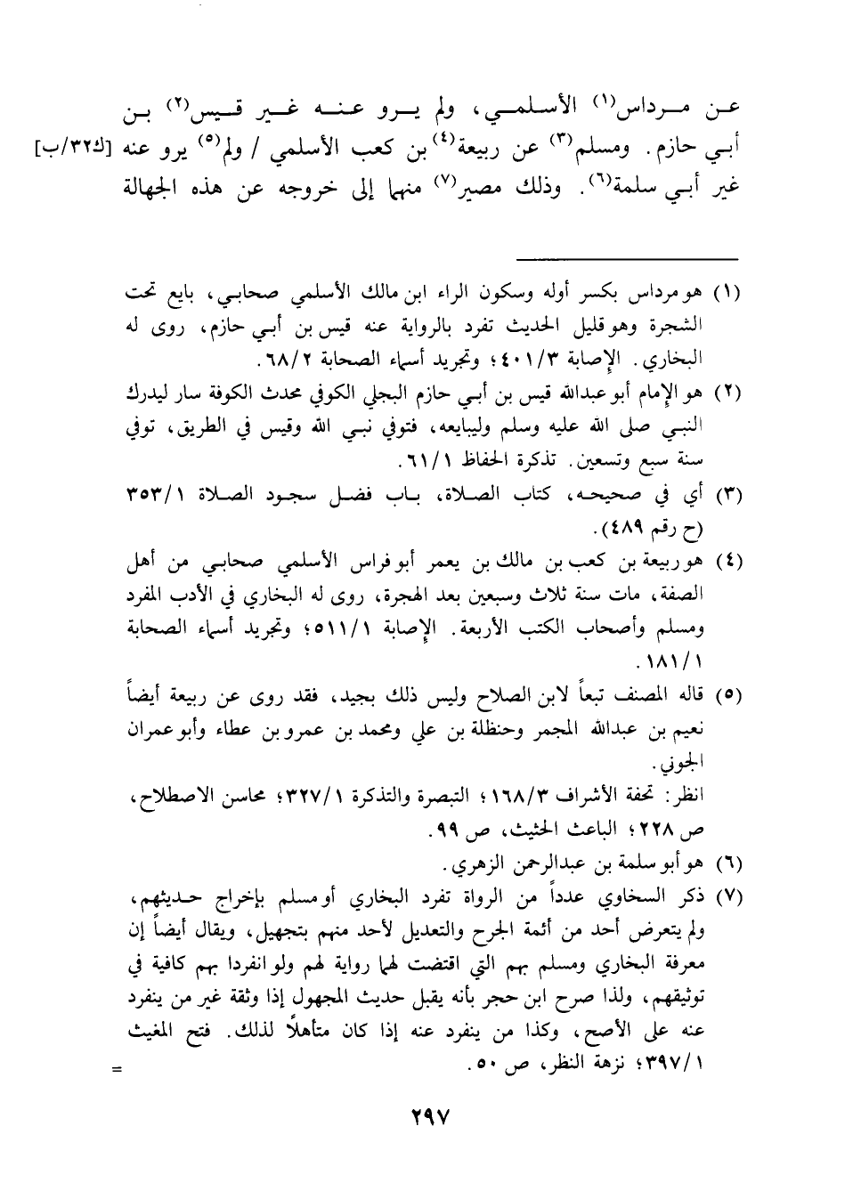 (¬1) هو مرداس بكسر أوله وسكون الراء ابن مالك الأسلمي صحابي، بايع تحت الشجرة وهو قليل الحديث تفرد بالرواية عنه قيس بن أبي حازم، روى له البخاري. الإِصابة 3/ 401؛ وتجريد أسماء الصحابة 2/ 68.