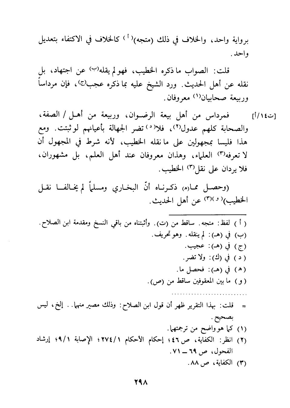 = قلت: بهذا التقرير ظهر أن قول ابن الصلاح: وذلك مصير منهما .. إلخ، ليس بصحيح.
