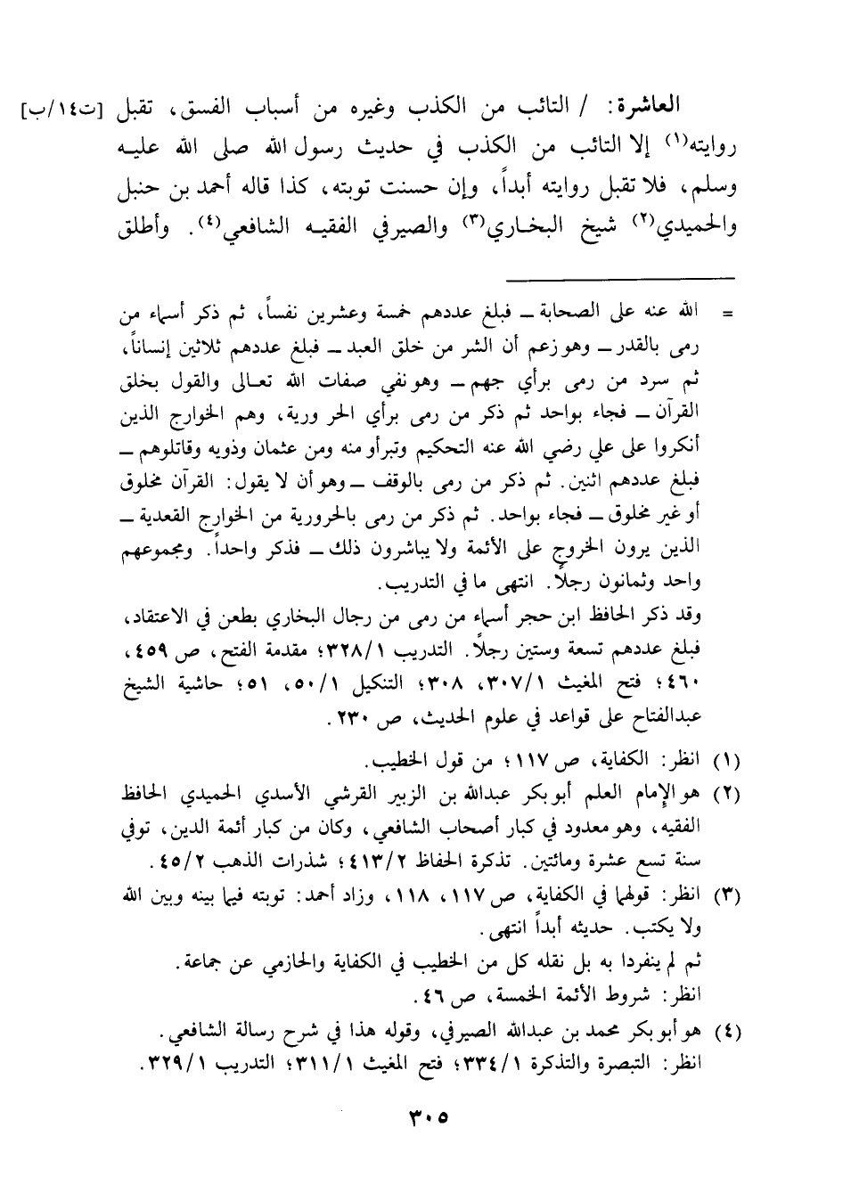 (¬3) انظر: قولهما في الكفاية، ص 117، 118، وزاد أحمد: توبته فيما بينه وبين الله ولا يكتب. حديثه أبدًا انتهى.