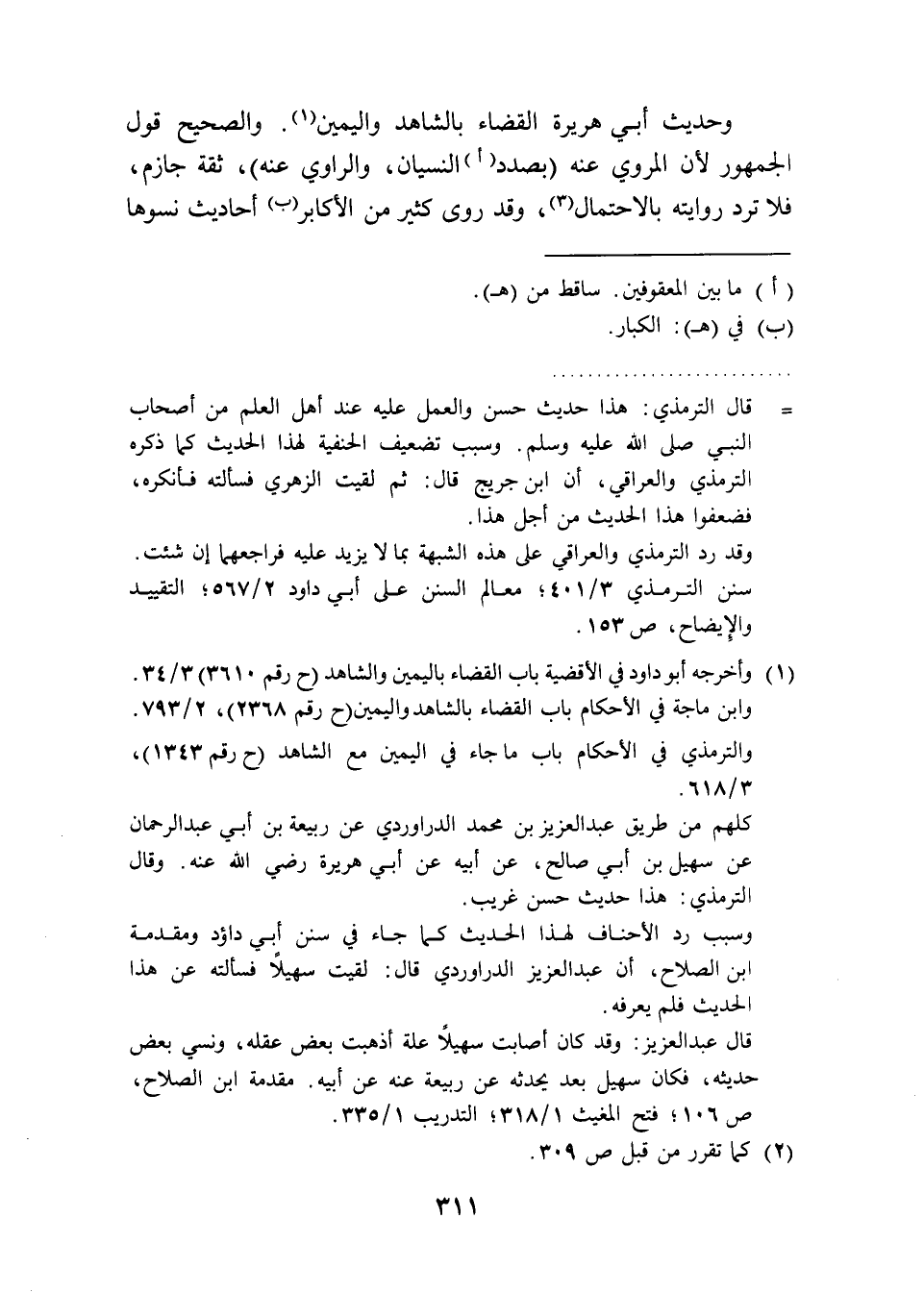 وقد رد الترمذي والعراقي على هذه الشبهة بما لا يزيد عليه فراجعهما إن شئت. سنن الترمذي 3/ 401؛ معالم السنن على أبي داود 2/ 567؛ التقييد والإِيضاح، ص 153.