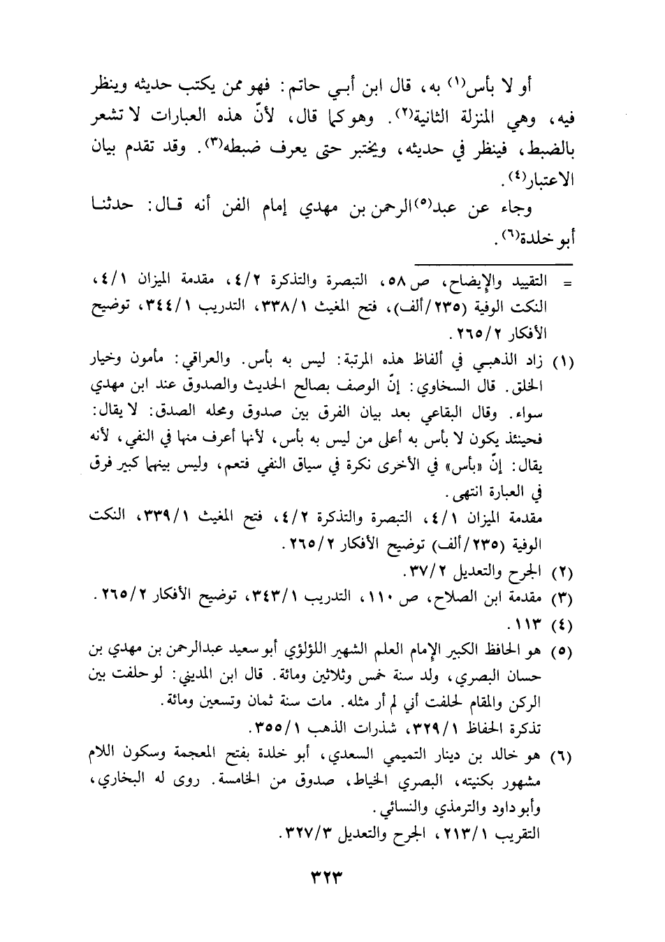 (¬3) مقدمة ابن الصلاح، ص 110، التدريب 1/ 343، توضيح الأفكار 2/ 265.