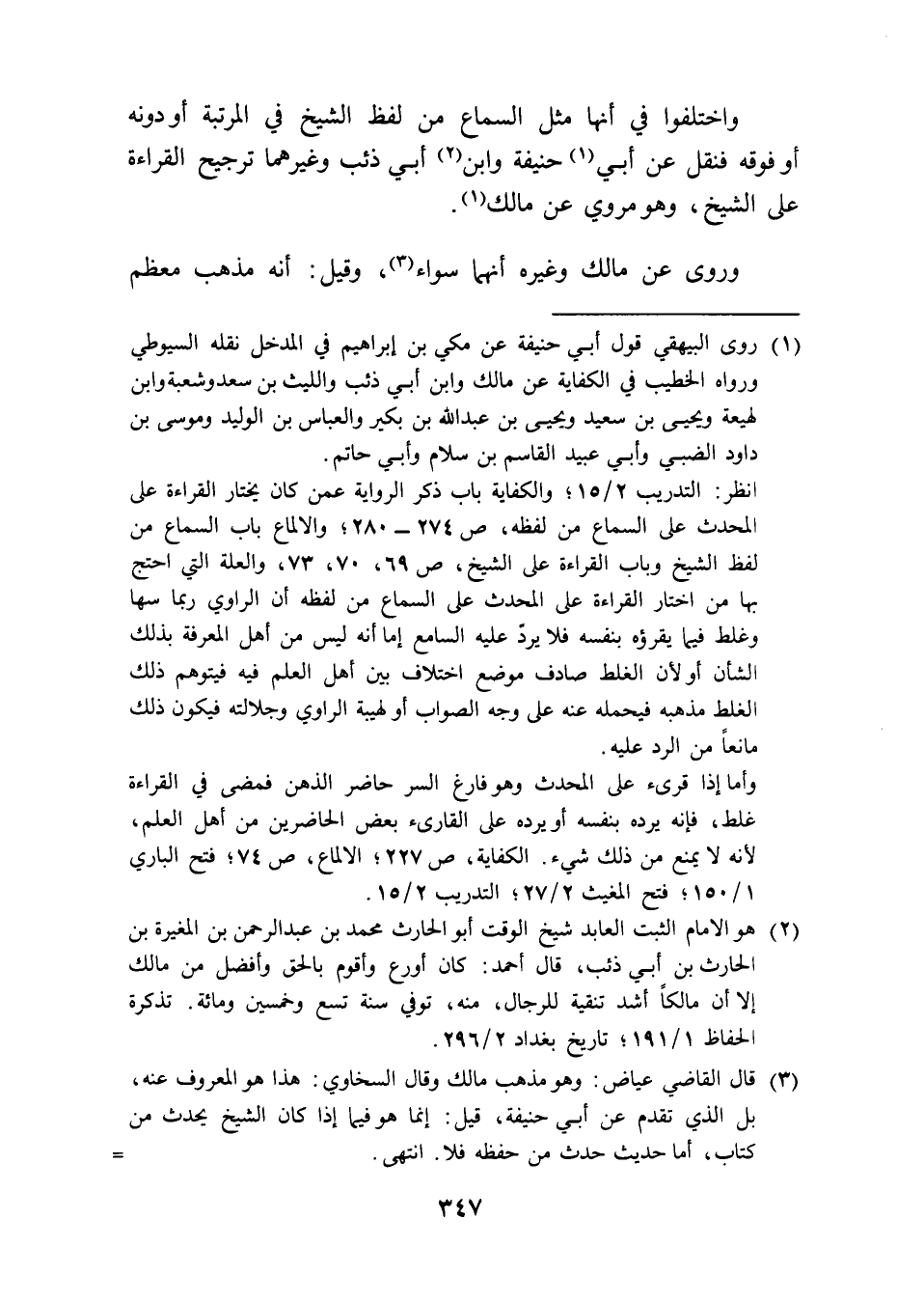 (¬3) قال القاضي عياض: وهو مذهب مالك وقال السخاوي: هذا هو المعروف عنه، بل الذي تقدم عن أبي حنيفة، قيل: إنما هو فيما إذا كان الشيخ يحدث من كتاب، أما حديث حدث من حفظه فلا. انتهى. =
