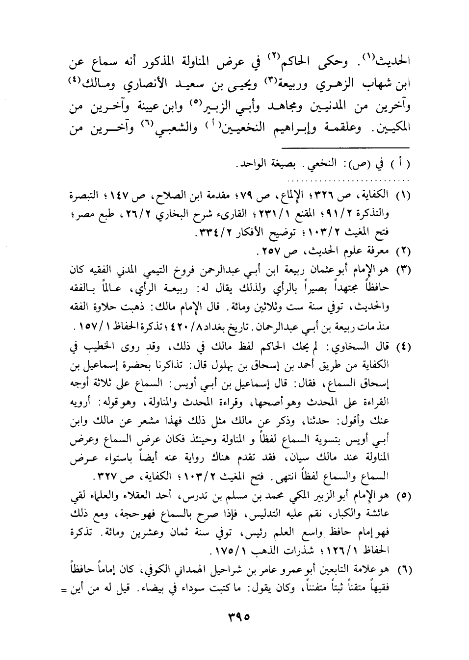 (¬1) الكفاية، ص 326؛ الإِلماع، ص 79؛ مقدمة ابن الصلاح، ص 147؛ التبصرة والتذكرة 2/ 91؛ المقنع 1/ 231؛ القارئ شرح البخاري 2/ 26، طبع مصر؛ فتح المغيث 2/ 103؛ توضيح الأفكار 2/ 334.