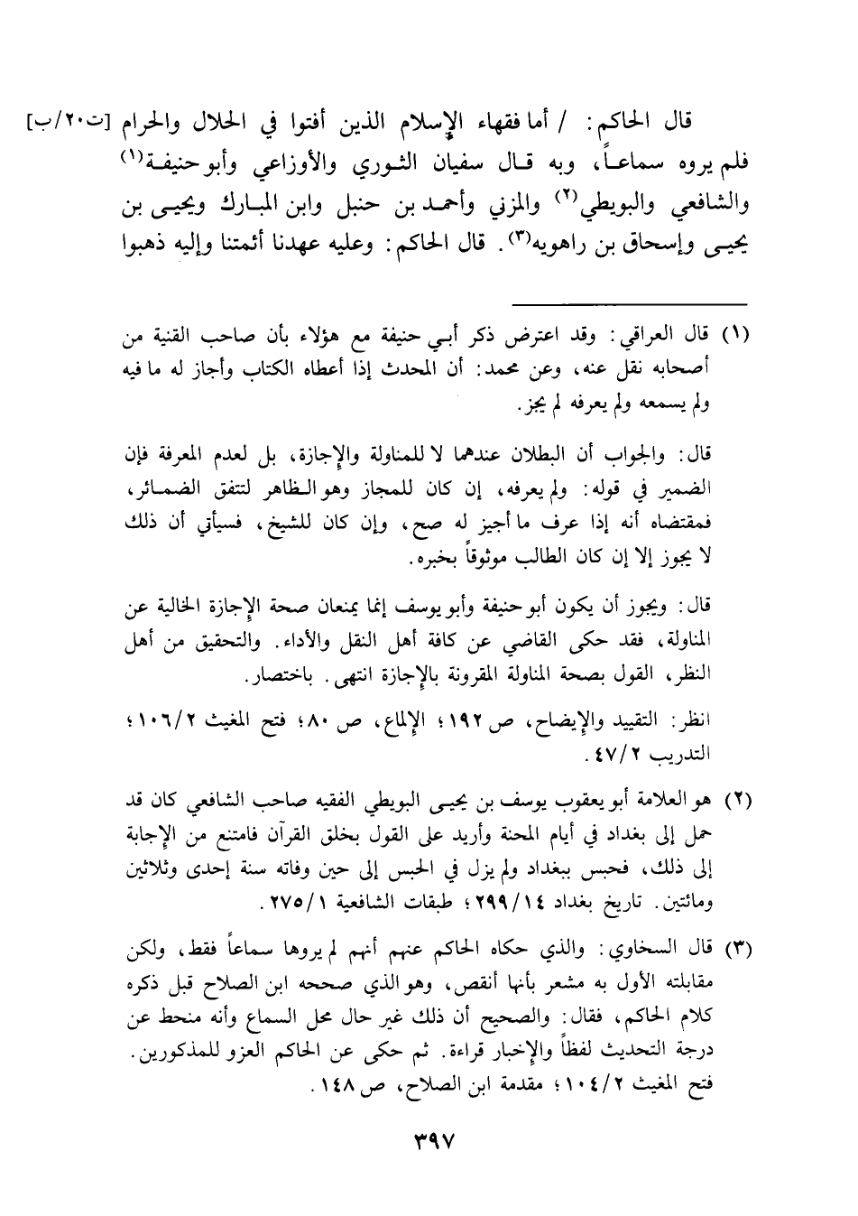 انظر: التقييد والإِيضاح، ص 192؛ الإِلماع، ص 80؛ فتح المغيث 2/ 106؛ التدريب 2/ 47.