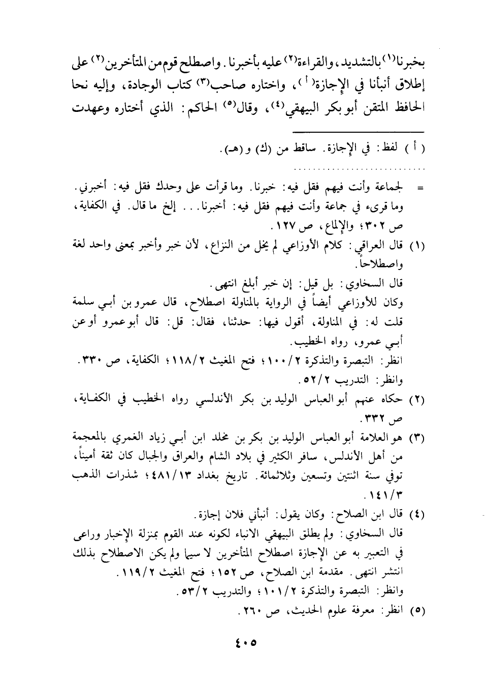 قال السخاوي: ولم يطلق البيهقي الانباء لكونه عند القوم بمنزلة الإِخبار وراعى في التعبير به عن الإِجازة اصطلاح المتأخرين لا سيما ولم يكن الاصطلاح بذلك انتشر انتهى. مقدمة ابن الصلاح، ص 152؛ فتح المغيث 2/ 119.