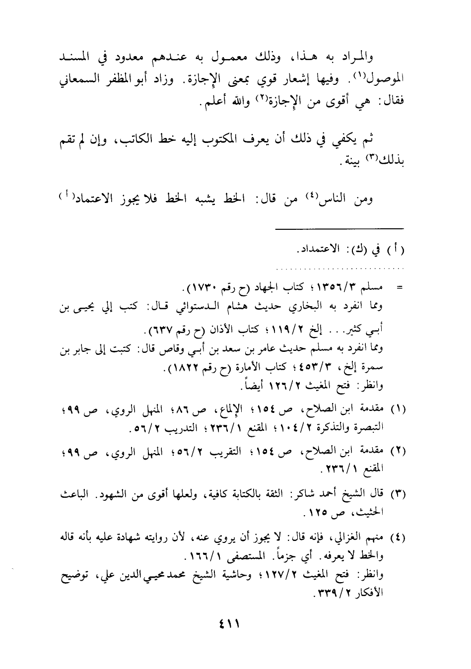 (¬1) مقدمة ابن الصلاح، ص 154؛ الإِلماع، ص 86؛ المنهل الروي، ص 99؛ التبصرة والتذكرة 2/ 104؛ المقنع 1/ 236؛ التدريب 2/ 56.