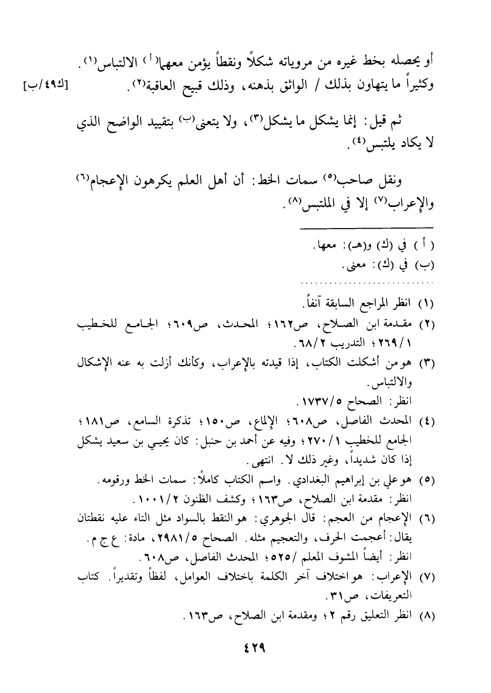 (¬8) انظر التعليق رقم 2؛ ومقدمة ابن الصلاح، ص 163.