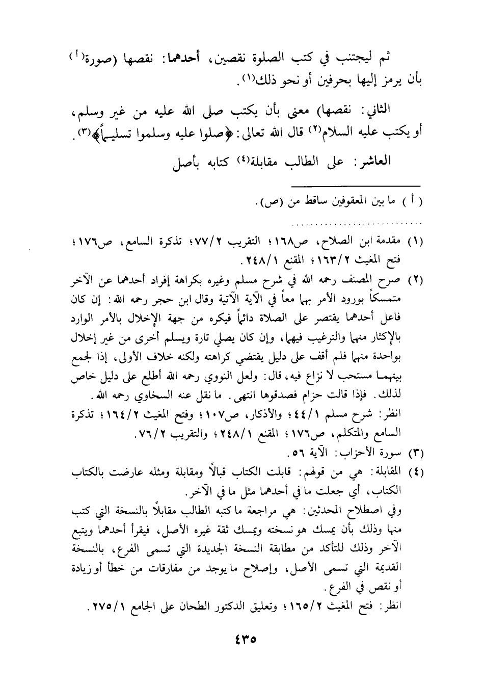 العاشر: على الطالب مقابلة (¬4) كتابه بأصل