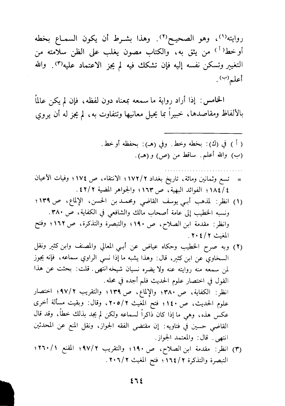 (¬1) انظر: لمذهب أبي يوسف القاضي ومحمد بن الحسن، الإِلماع، ص 139؛ ونسبه الخطيب إلى عامة أصحاب مالك والشافعي في الكفاية، ص 380.