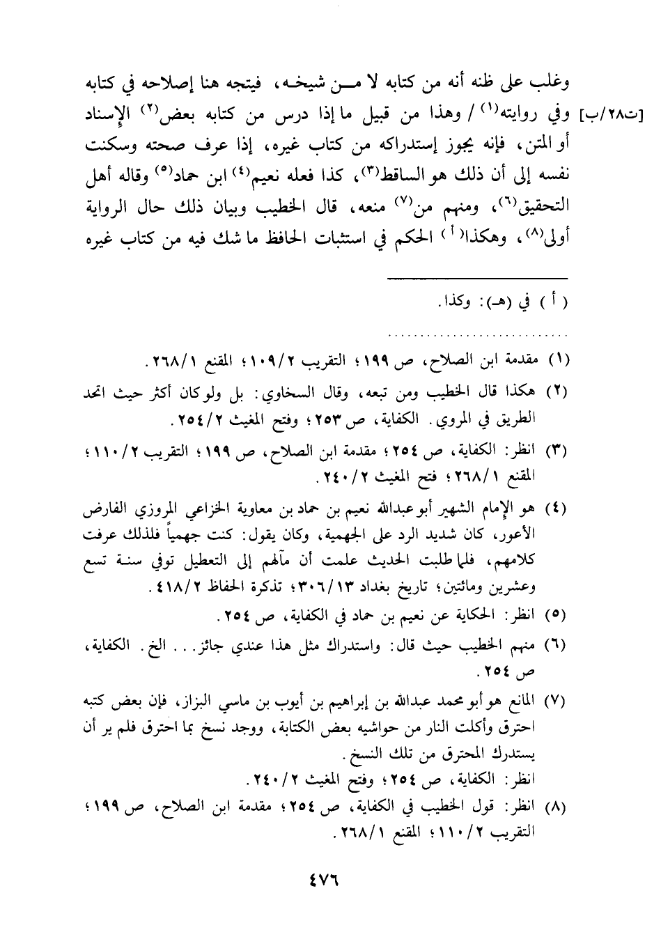 (¬8) انظر: قول الخطيب في الكفاية، ص 254؛ مقدمة ابن الصلاح، ص 199؛ التقريب 2/ 110؛ المقنع 1/ 268.
