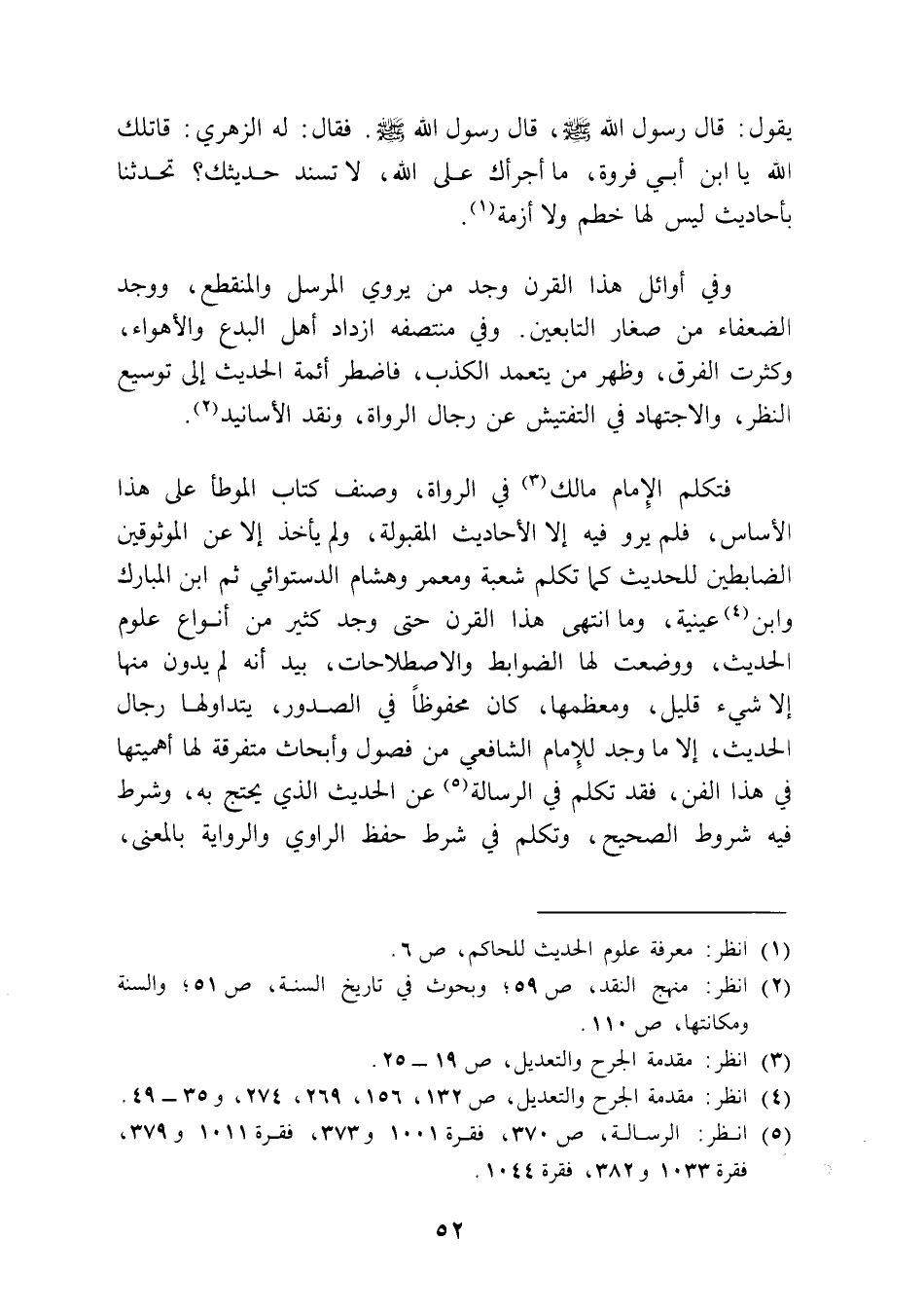 (¬2) انظر: منهج النقد، ص 59؛ وبحوث في تاريخ السنة، ص 51؛ والسنة ومكانتها، ص 110.