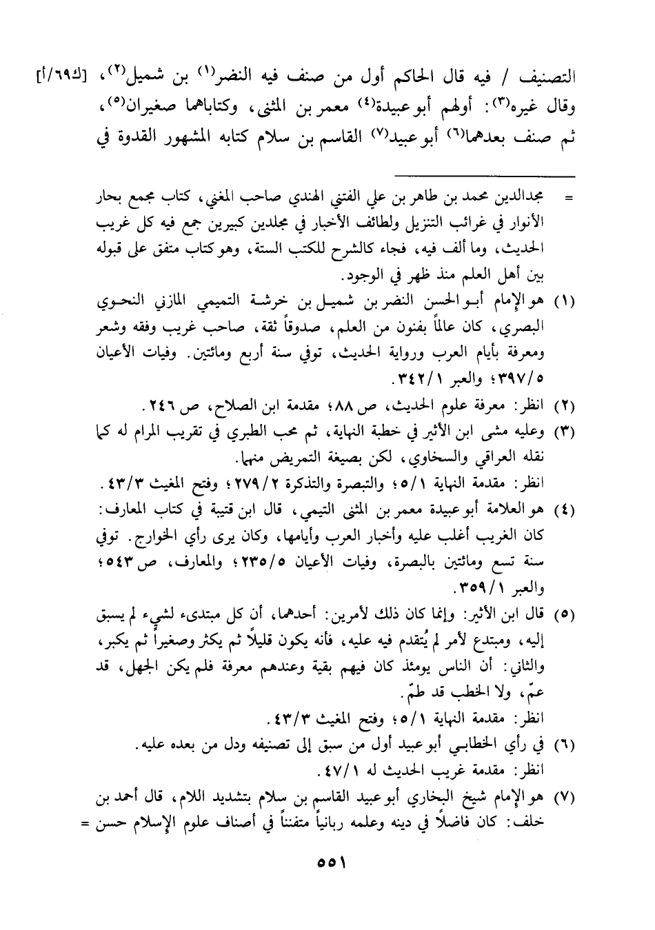 (¬4) هو العلامة أبو عبيدة معمر بن المثنى التيمي، قال ابن قتيبة في كتاب المعارف: كان الغريب أغلب عليه وأخبار العرب وأيامها، وكان يرى رأي الخوارج. توفي سنة تسع ومائتين بالبصرة، وفيات الأعيان 5/ 235؛ والمعارف، ص 543؛ والعبر 1/ 359.
