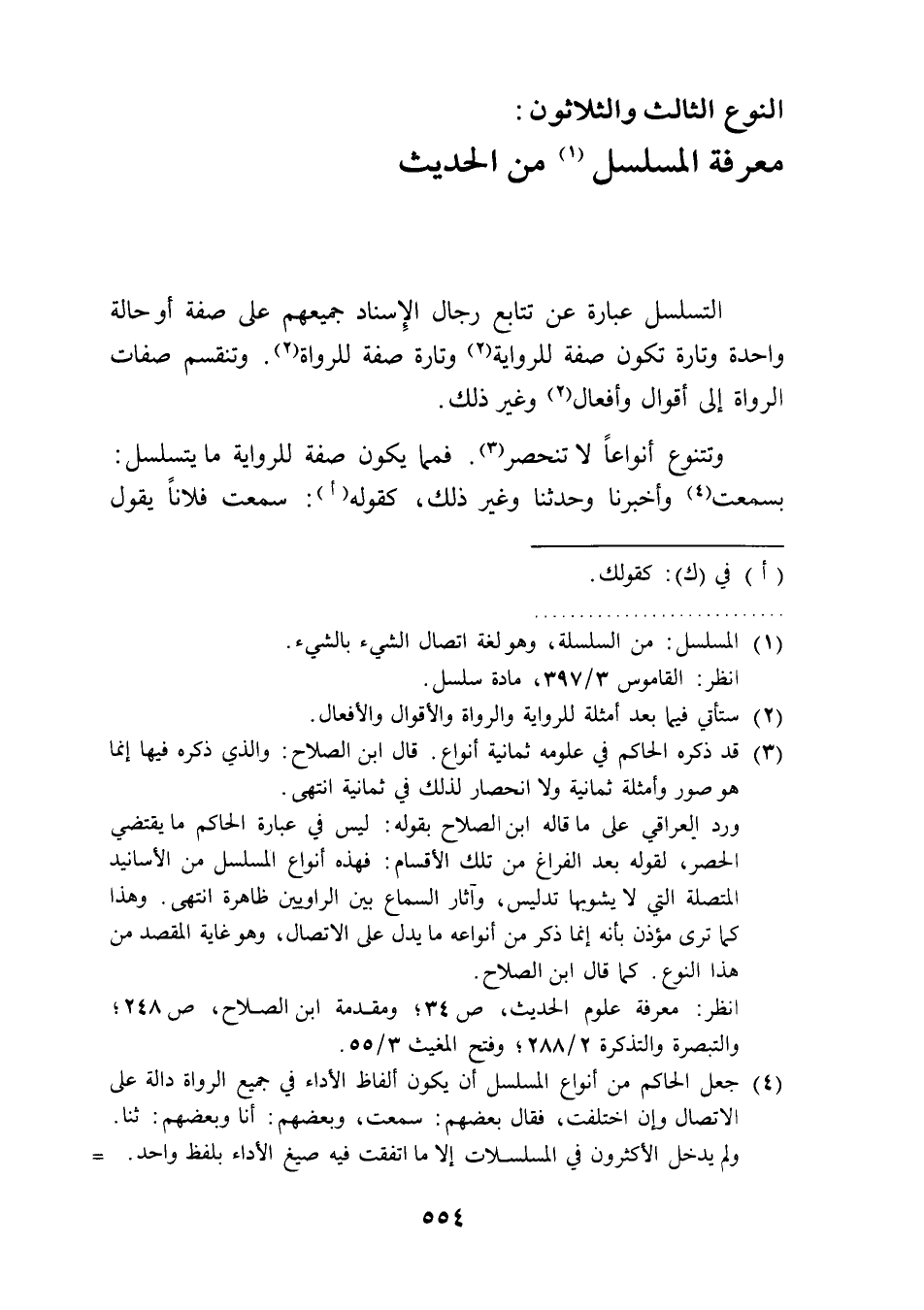 النوع الثالث والثلاثون: معرفة المسلسل (¬1) من الحديث