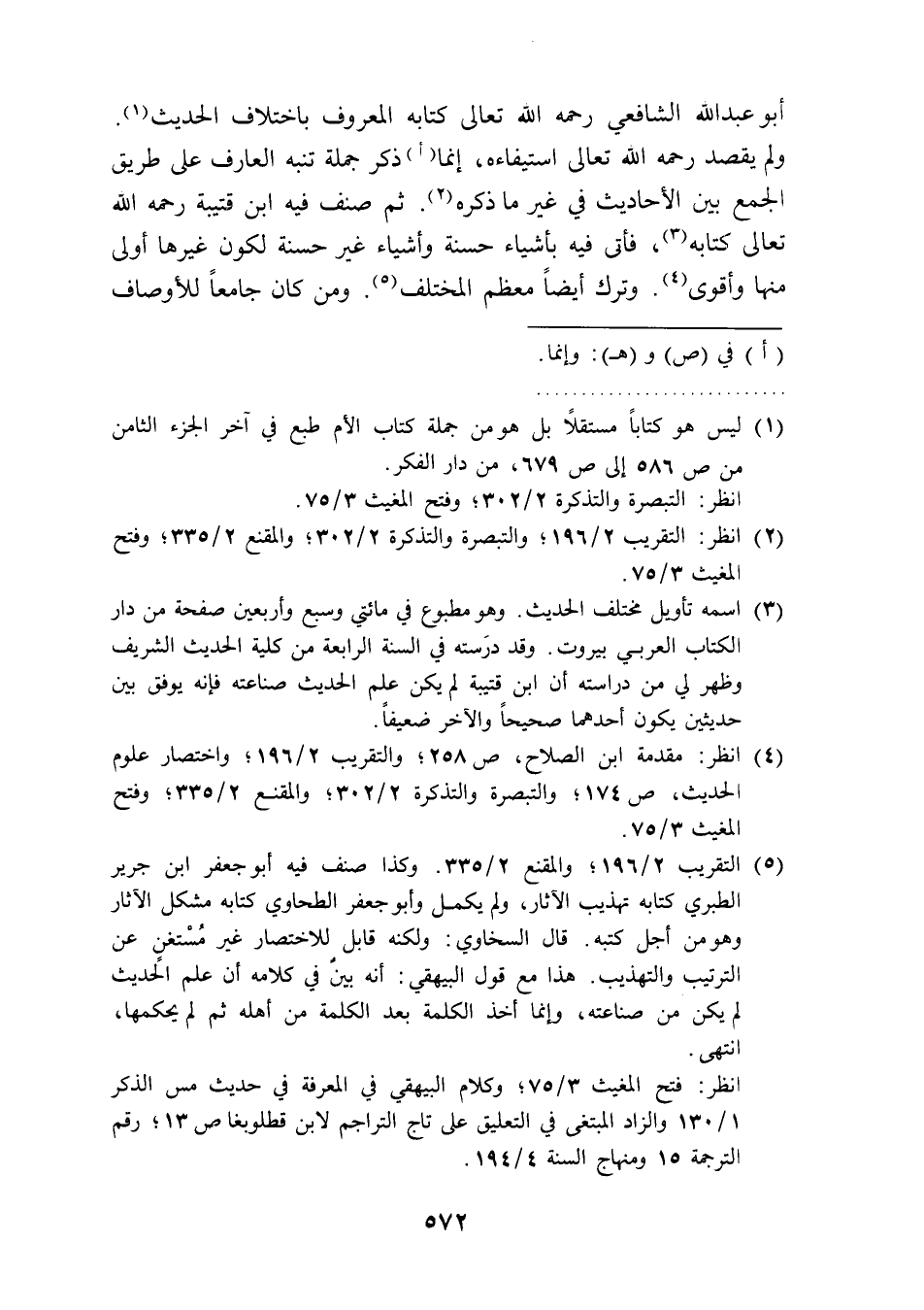 (¬5) التقريب 2/ 196؛ والمقنع 2/ 335. وكذا صنف فيه أبو جعفر ابن جرير الطبري كتابه تهذيب الآثار، ولم يكمل وأبو جعفر الطحاوي كتابه مشكل الآثار وهو من أجل كتبه. قال السخاوي: ولكنه قابل للاختصار غير مُسْتغنٍ عن الترتيب والتهذيب. هذا مع قول البيهقي: أنه بين في كلامه أن علم الحديث لم يكن من صناعته، وإنما أخذ الكلمة بعد الكلمة من أهله ثم لم يحكمها، انتهى.