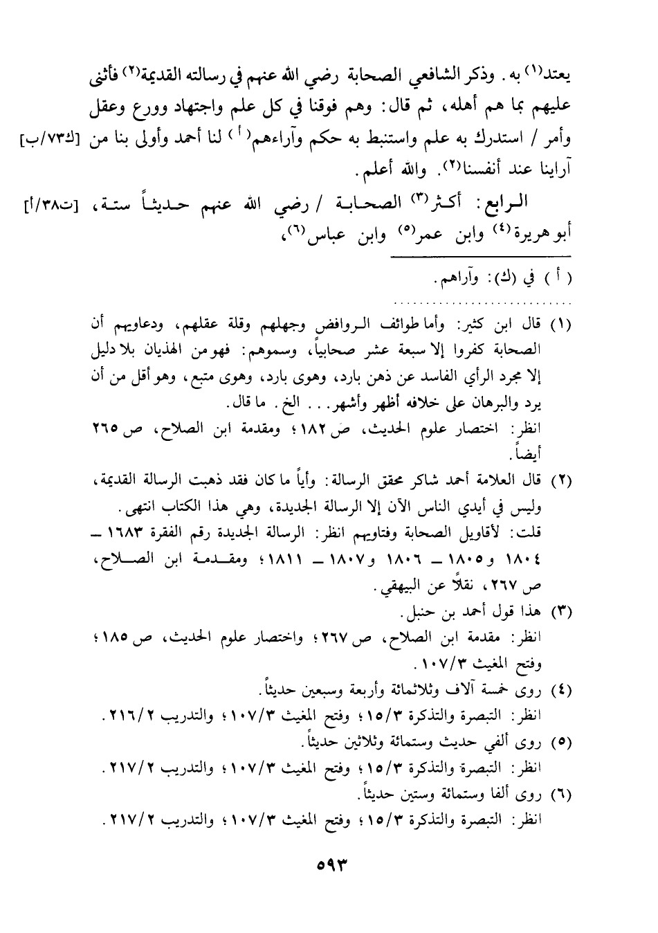 (¬1) قال ابن كثير: وأما طوائف الروافض وجهلهم وقلة عقلهم، ودعاويهم أن الصحابة كفروا إلا سبعة عشر صحابيًا، وسموهم: فهو من الهذيان بلا دليل إلا مجرد الرأي الفاسد عن ذهن بارد، وهوى بارد، وهوى متبع، وهو أقل من أن يرد والبرهان على خلافه أظهر وأشهر ... الخ. ما قال.