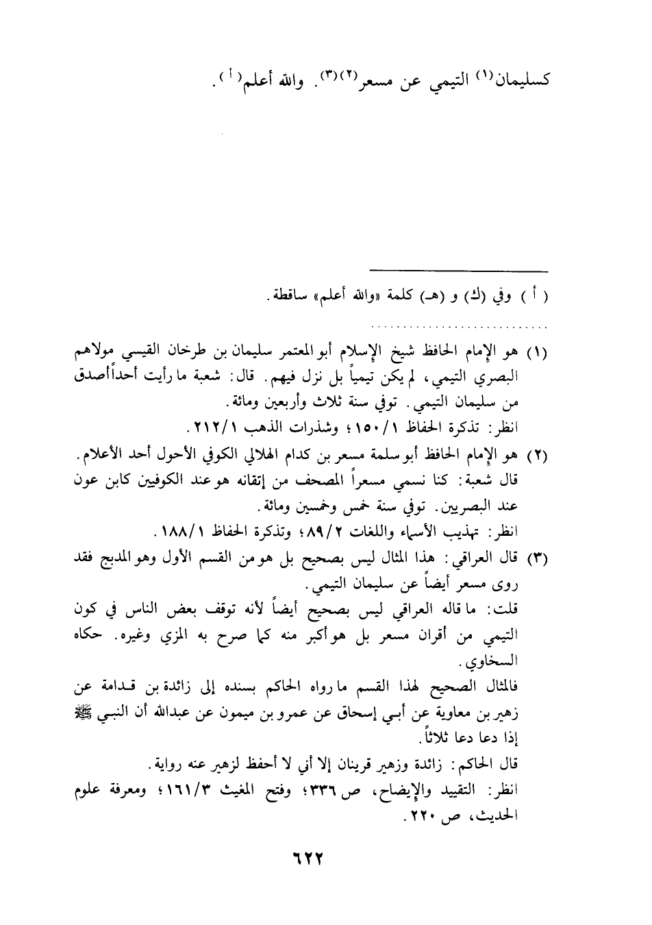(¬3) قال العراقي: هذا المثال ليس بصحيح بل هو من القسم الأول وهو المدبج فقد روى مسعر أيضًا عن سليمان التيمي.