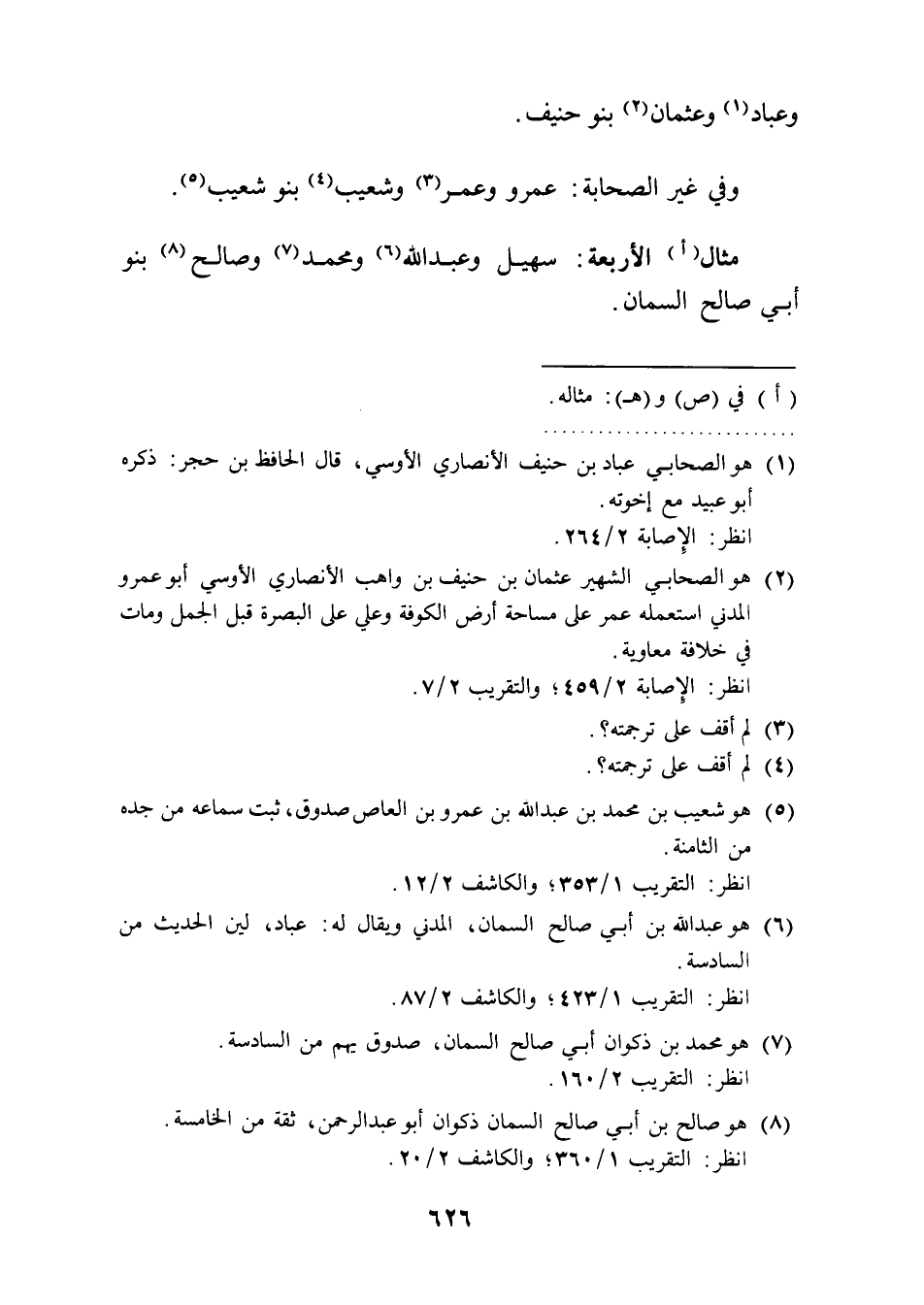 (¬1) هو الصحابي عباد بن حنيف الأنصاري الأوسي، قال الحافظ بن حجر: ذكره أبو عبيد مع إخوته.