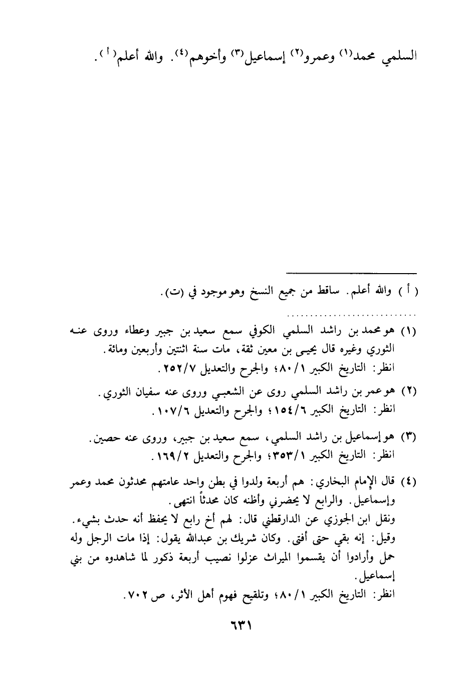 السلمي محمد (¬1) وعمرو (¬2) إسماعيل (¬3) وأخوهم (¬4). والله أعلم (أ).
