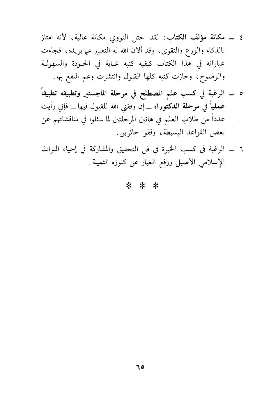 6 - الرغبة في كسب الخبرة في فن التحقيق والمشاركة في إحياء التراث الإِسلامي الأصيل ورفع الغبار عن كنوزه الثمينة.