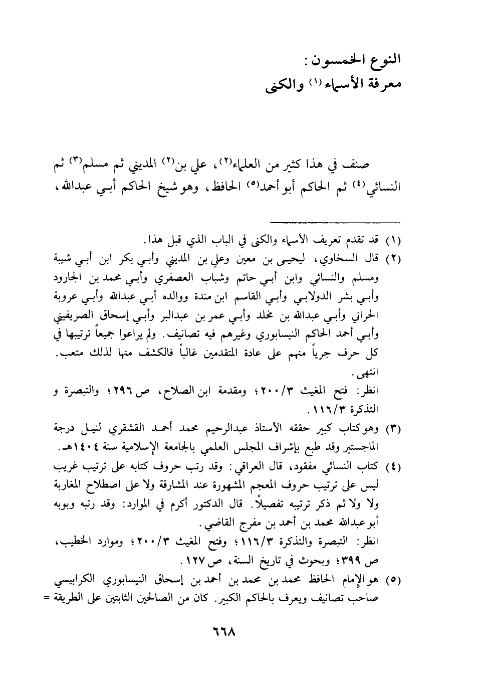 انظر: فتح المغيث 3/ 200؛ ومقدمة ابن الصلاح، ص 296؛ والتبصرة والتذكرة 3/ 116.