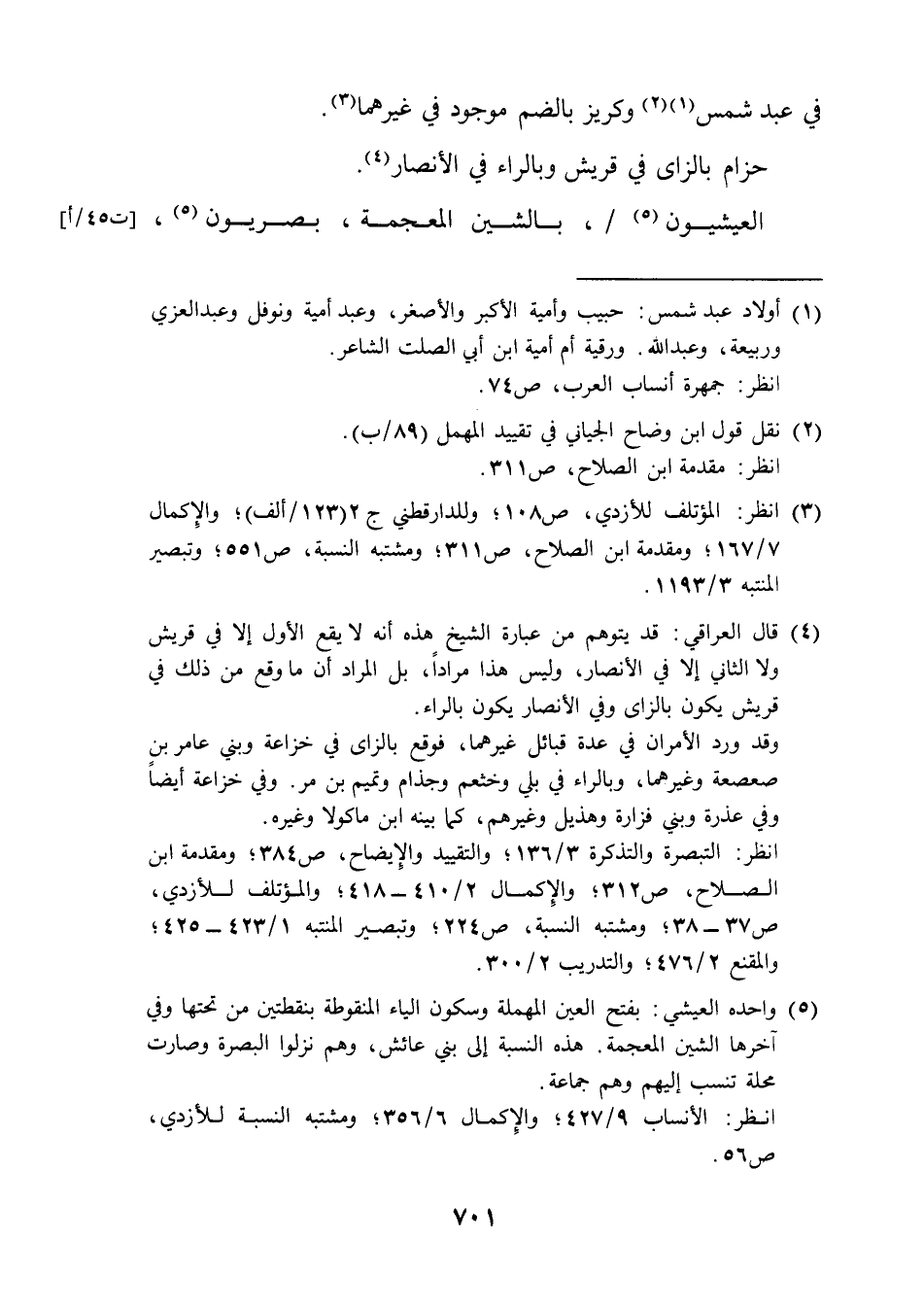 (¬3) انظر: المؤتلف للأزدي، ص 108؛ وللدارقطني ج 2 (123/ ألف)؛ والإِكمال 7/ 167؛ ومقدمة ابن الصلاح، ص 311؛ ومشتبه النسبة، ص 551؛ وتبصير المنتبه 3/ 1193.