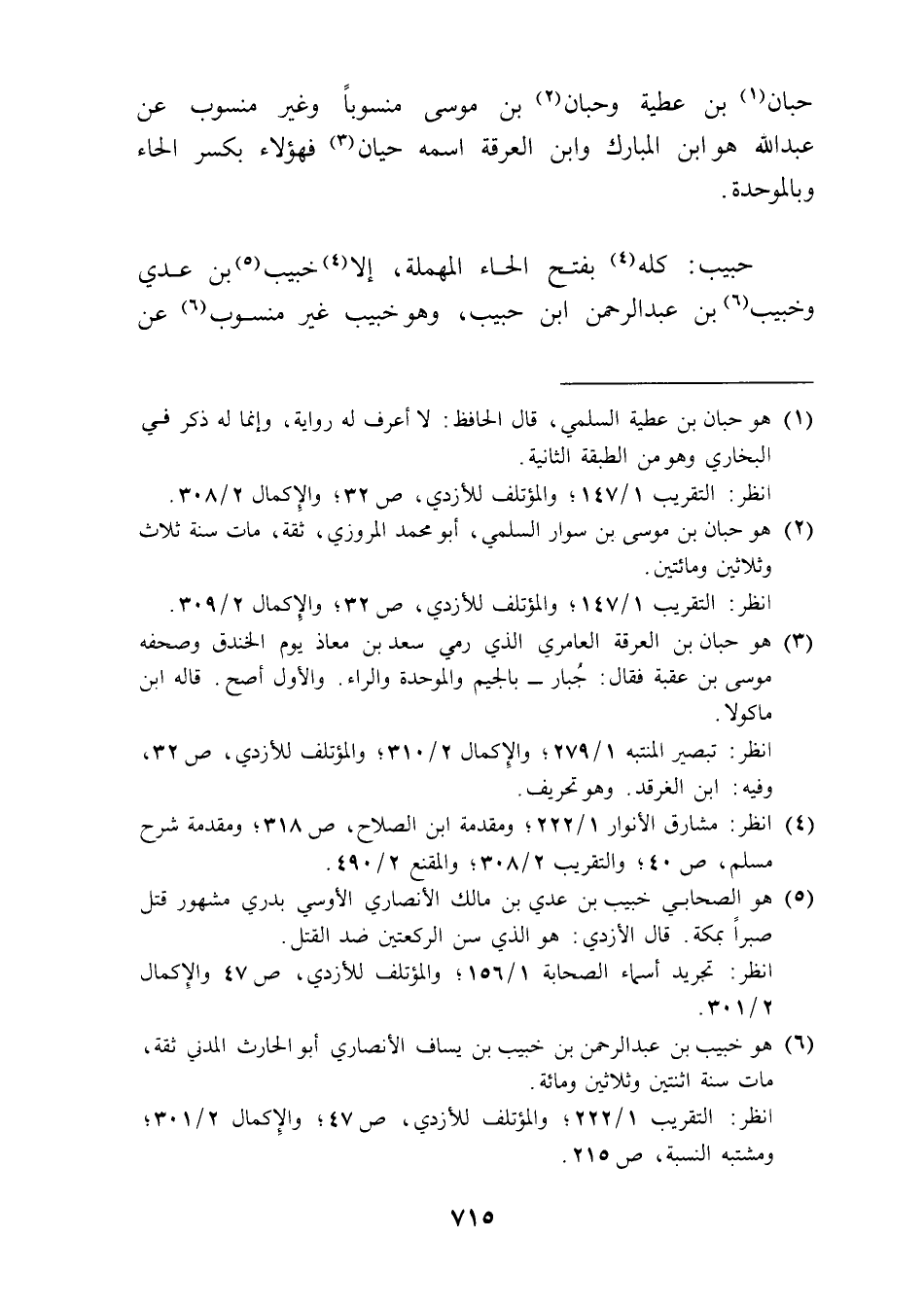 حبان (¬1) بن عطية وحبان (¬2) بن موسى منسوبًا وغير منسوب عن عبد الله هو ابن المبارك وابن العرقة اسمه حيان (¬3) فهؤلاء بكسر الحاء وبالموحدة.