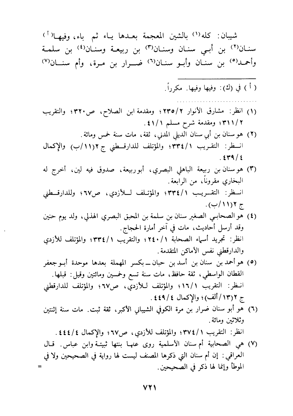 (¬4) هو الصحابي الصغير سنان بن سلمة بن المحبق البصري الهذلي، ولد يوم حنين وقد أرسل أحاديث، مات في آخر أمارة الحجاج.