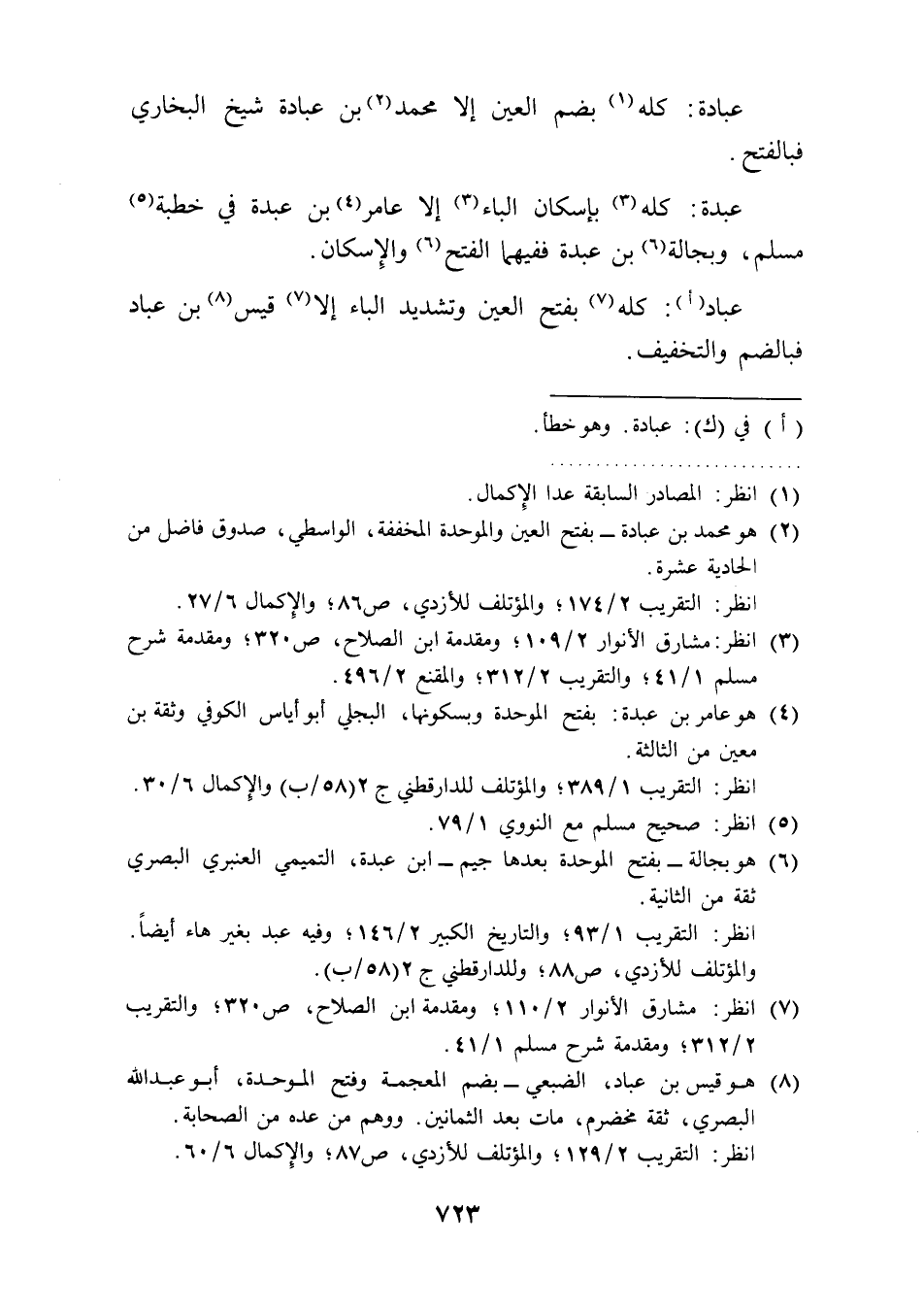 عبدة: كله (¬3) بإسكان الباء (3) إلا عامر (¬4) بن عبدة في خطبة (¬5) مسلم، وبجالة (6) بن عبدة ففيهما الفتح (¬6) والإِسكان.