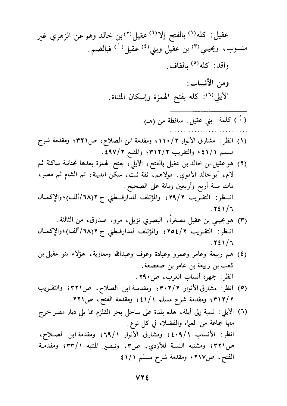 عقيل: كله (¬1) بالفتح إلا (1) عقيل (¬2) بن خالد وهو عن الزهري غير منسوب، ويحيى (¬3) بن عقيل وبني (¬4) عقيل (أ) فبالضم.