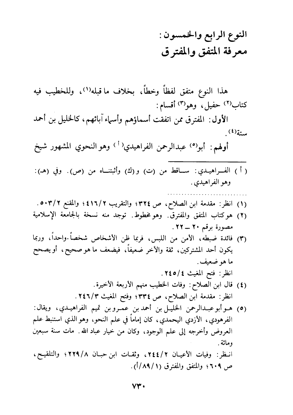 (¬1) انظر: مقدمة ابن الصلاح، ص 324؛ والتقريب 2/ 416؛ والمقنع 2/ 503.