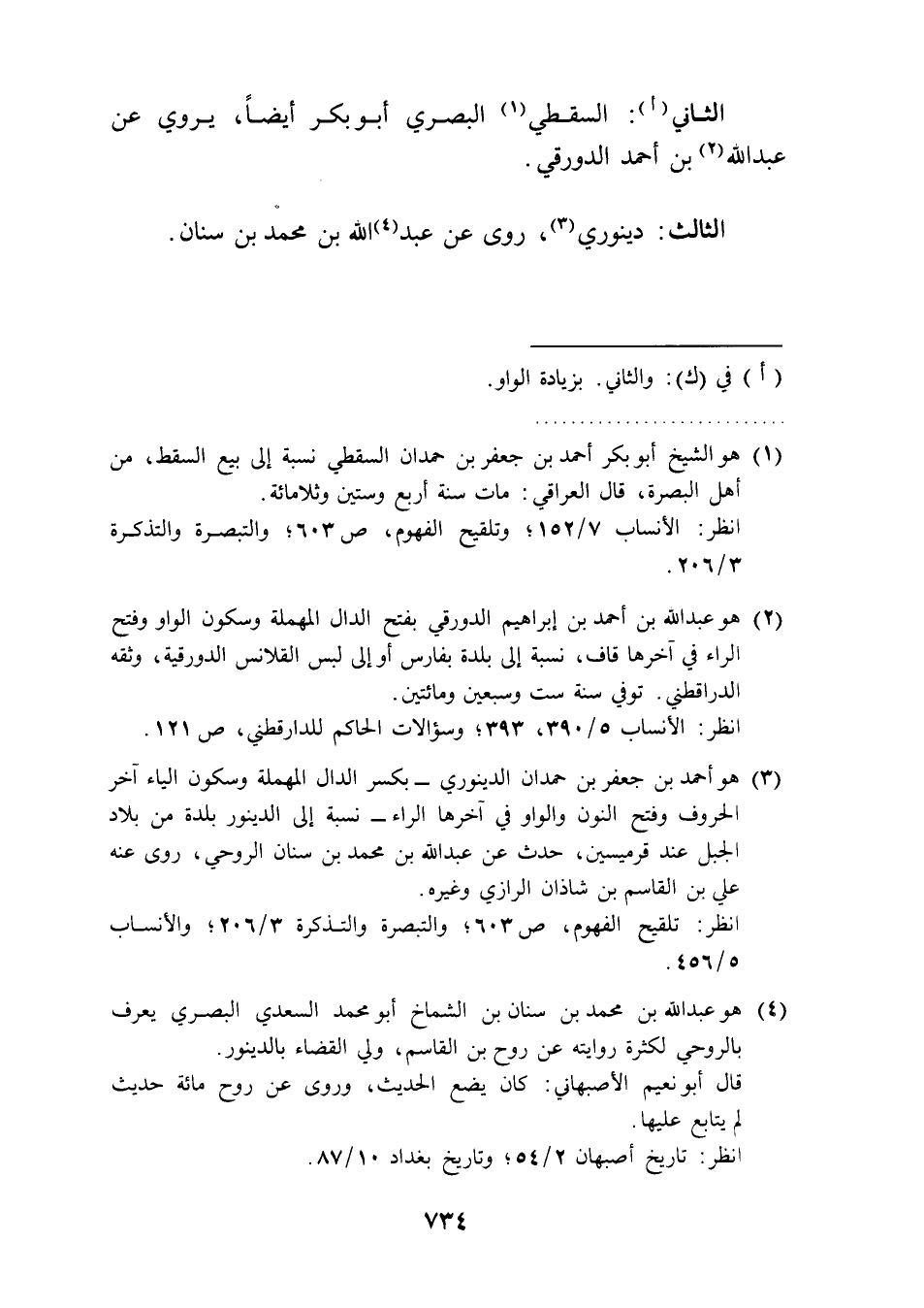 (¬2) هو عبد الله بن أحمد بن إبراهيم الدورقي بفتح الدال المهملة وسكون الواو وفتح الراء في آخرها قاف، نسبة إلى بلدة بفارس أو إلى لبس القلانس الدورقية، وثقه الدارقطني. توفي سنة ست وسبعين ومائتين.