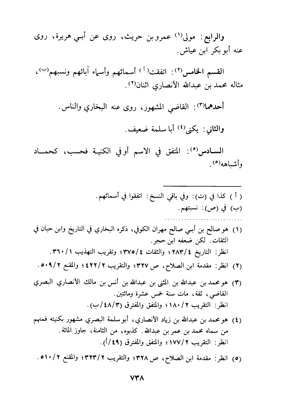 السادس (¬5): المتفق في الاسم أو في الكنية فحسب، كحماد وأشباهه (5).