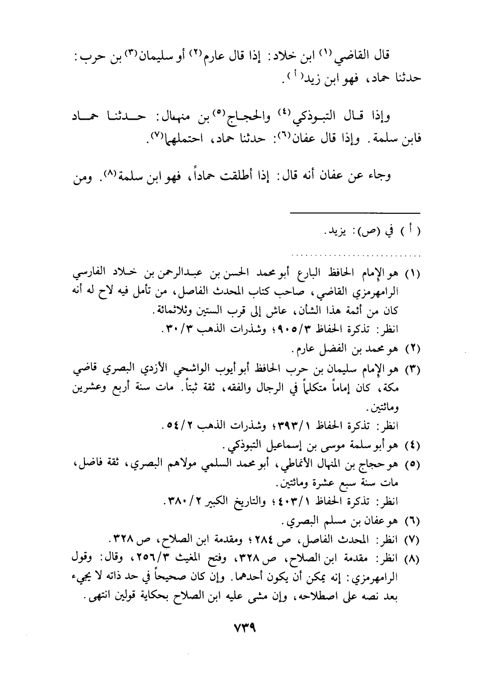 (¬7) انظر: المحدث الفاصل، ص 284؛ ومقدمة ابن الصلاح، ص 328.