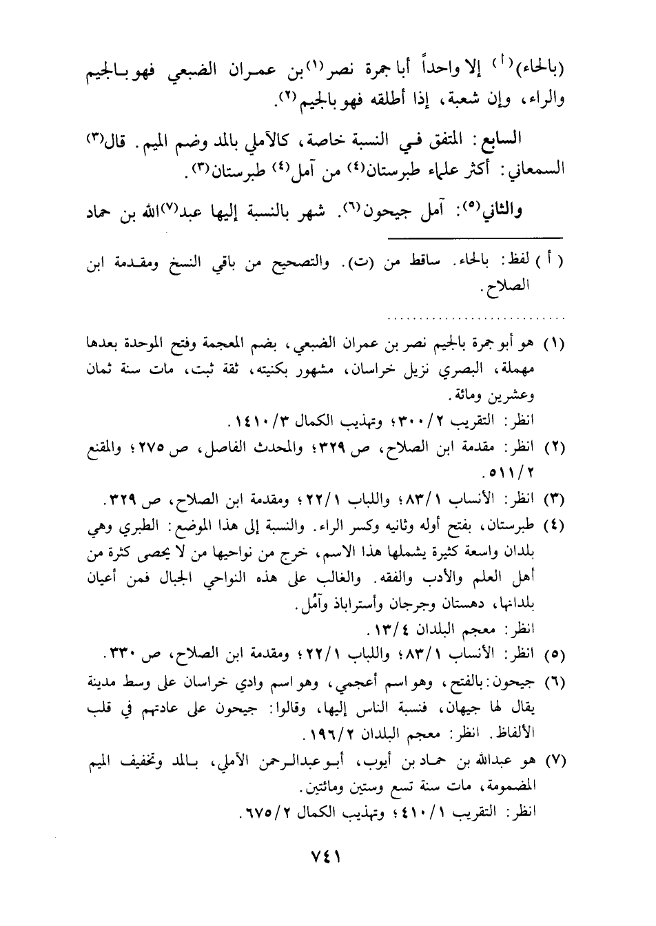 (¬5) انظر: الأنساب 1/ 83؛ واللباب 1/ 22؛ ومقدمة ابن الصلاح، ص 330.