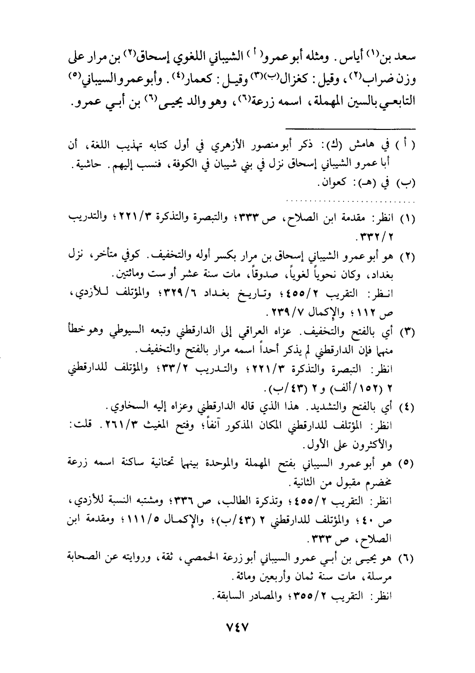 (¬2) هو أبو عمرو الشيباني إسحاق بن مرار بكسر أوله والتخفيف. كوفي متأخر، نزل بغداد، وكان نحويًا لغويًا، صدوقًا، مات سنة عشر أو ست ومائتين.