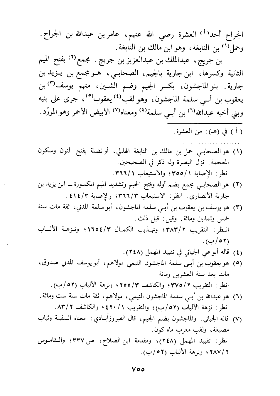 ابن جريج، عبد الملك بن عبد العزيز بن جريج. مجمع (¬2) بفتح الميم الثانية وكسرها، ابن جارية بالجيم، الصحابي، هو مجمع بن يزيد بن جارية. بنو الماجشون، بكسر الجيم وضم الشين، منهم يوسف (¬3) بن يعقوب بن أبي سلمة الماجشون، وهو لقب (¬4) يعقوب (¬5)، جرى على بنيه وبني أخيه عبد الله (¬6) بن أبي سلمة (4) ومعناه (¬7) الأبيض الأحمر وهو المورّد.