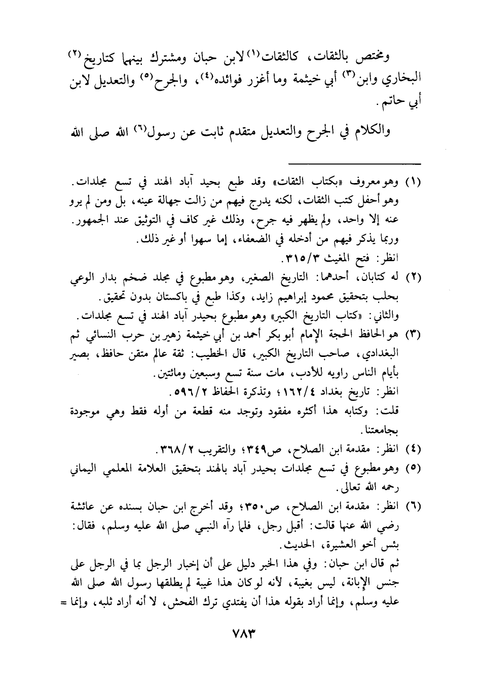 (¬5) وهو مطبوع في تسع مجلدات بحيدر آباد بالهند بتحقيق العلامة المعلمي اليماني رحمه الله تعالى.