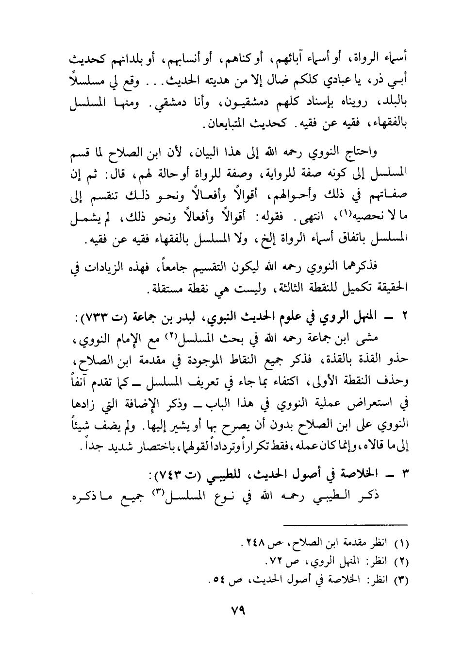 ذكر الطيبي رحمه الله في نوع المسلسل (¬3) جميع ما ذكره