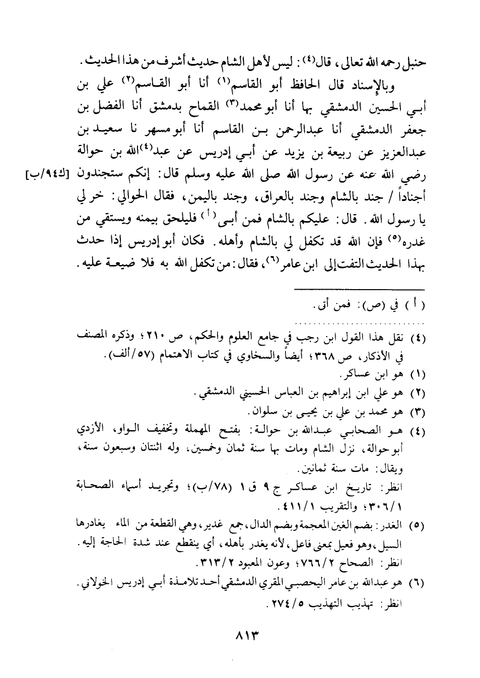 حنبل رحمه الله تعالى، قال (¬1): ليس لأهل الشام حديث أشرف من هذا الحديث.
