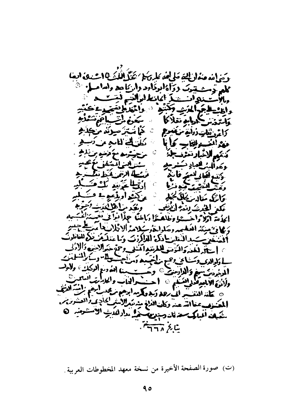 (ت) صورة الصفحة الأخيرة من نسخة معهد المخطوطات العربية.