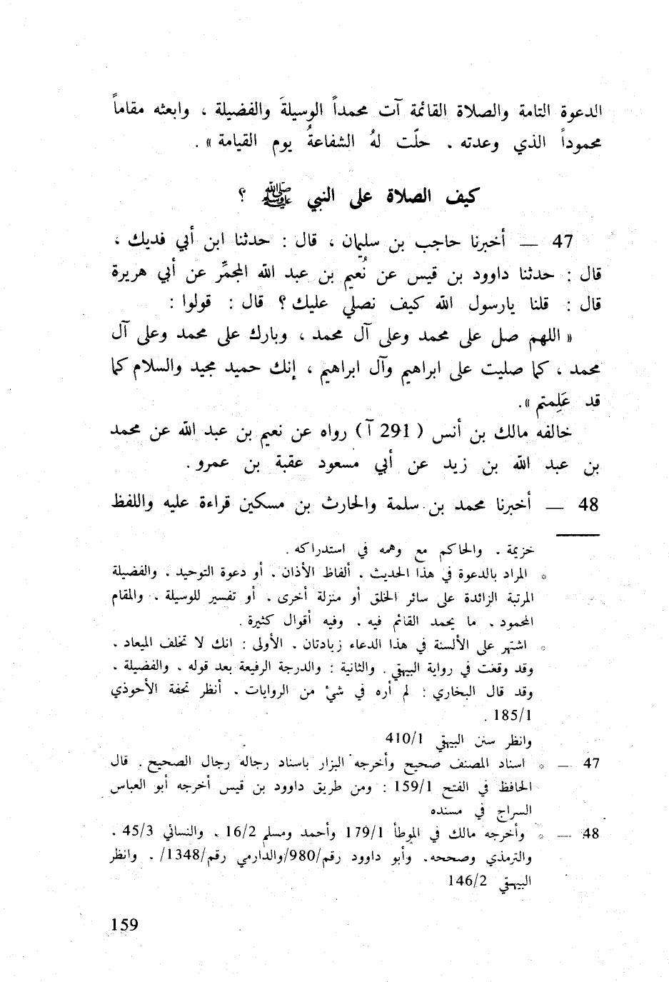 47 - أخبرنَا حَاجِب بن سُلَيْمَان قَالَ حَدثنَا ابْن أبي فديك قَالَ حَدثنَا دَاوُود بن قيس عَن نعيم بن عبد الله المجمر عَن أبي هُرَيْرَة قَالَ قُلْنَا يَا رَسُول الله كَيفَ نصلي عَلَيْك قَالَ قُولُوا اللَّهُمَّ صل على مُحَمَّد وعَلى آل مُحَمَّد وَبَارك على مُحَمَّد وعَلى آل مُحَمَّد كَمَا صليت على ابراهيم وَآل ابراهيم إِنَّك حميد مجيد وَالسَّلَام كَمَا قد علمْتُم