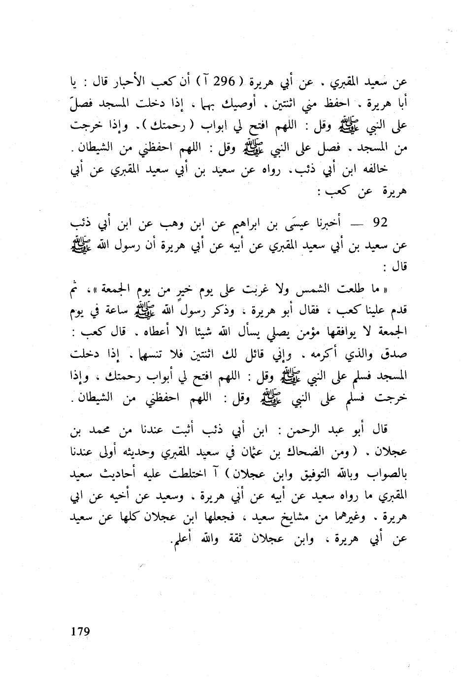 92 - أخبرنَا عِيسَى بن ابراهيم عَن ابْن وهب عَن ابْن أبي ذِئْب عَن سعيد بن أبي سعيد المَقْبُري عَن أَبِيه عَن أبي هُرَيْرَة أَن رَسُول الله صلى الله عَلَيْهِ وَسلم قَالَ