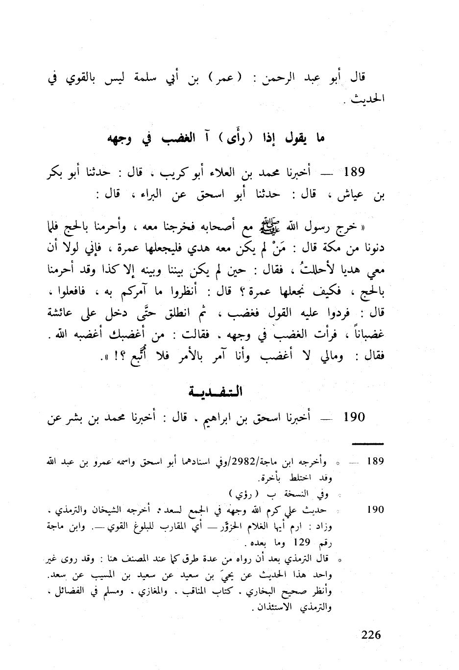 189 - أخبرنَا مُحَمَّد بن الْعَلَاء أَبُو كريب قَالَ حَدثنَا أَبُو بكر بن عَيَّاش قَالَ حَدثنَا أَبُو اسحق عَن الْبَراء قَالَ