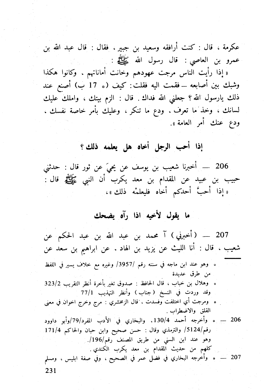 207 - (أَخْبرنِي) آمحمد بن عبد الله بن عبد الحكم عَن شُعَيْب قَالَ أَنا اللَّيْث عَن يزِيد بن الْهَاد عَن ابراهيم بن سعد عَن