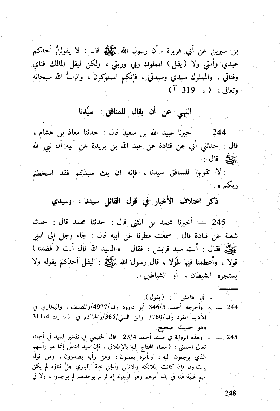 لَا تَقولُوا لِلْمُنَافِقِ سيدنَا فإِنه إِن يَك سيدكم فقد أسخطتم ربكُم